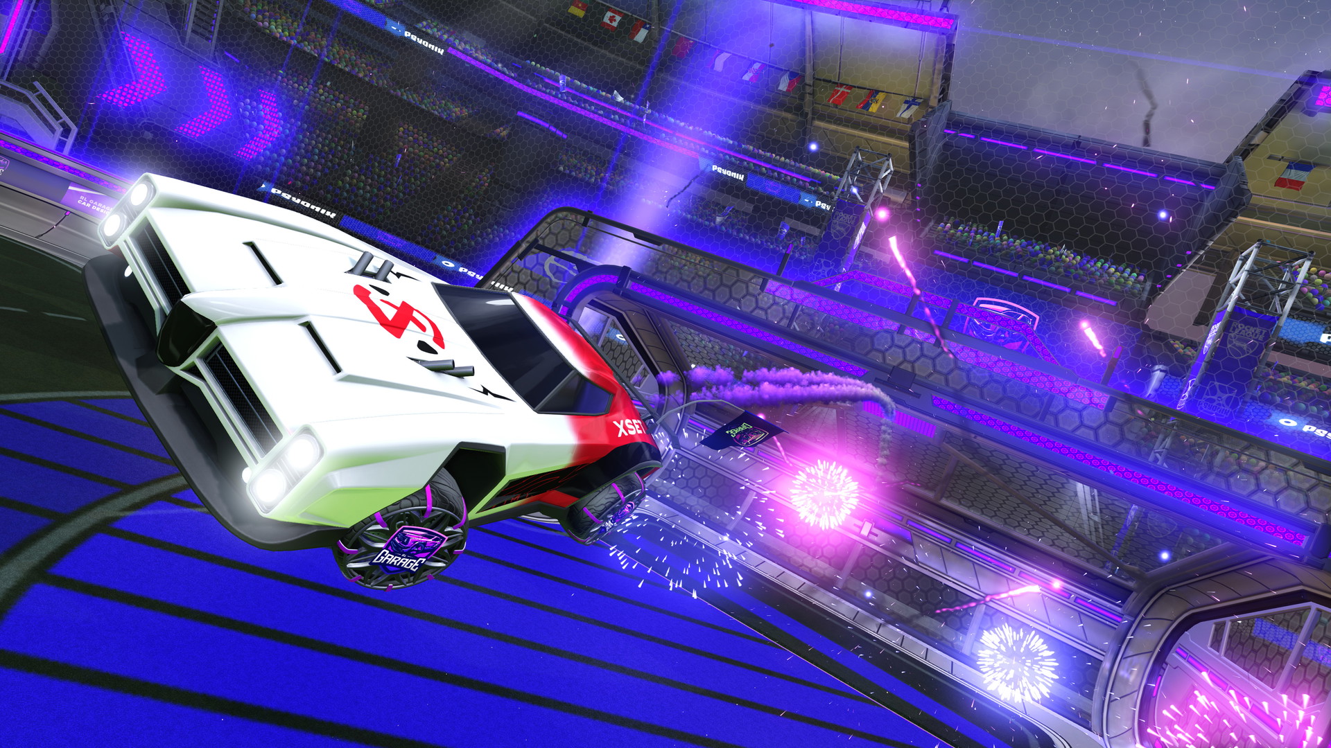 Purple Larson LLC are Deluxe Wheels. It's also available in Rocket League Sideswipe.