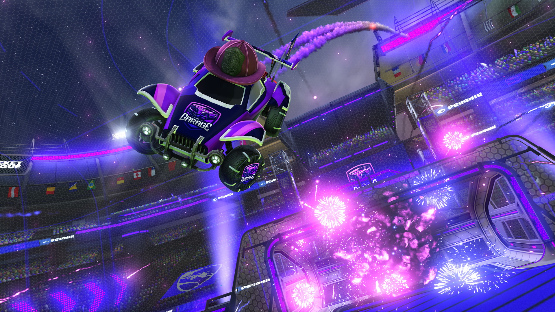 Purple Hoeger Inc are Sport Wheels. It may come in Sport quality, depending on the paint or how the item was obtained. This item can be obtained via Drops. It's also available in Rocket League Sideswipe. Before Psyonix removed player to player trading from Rocket League it was obtainable through trading.