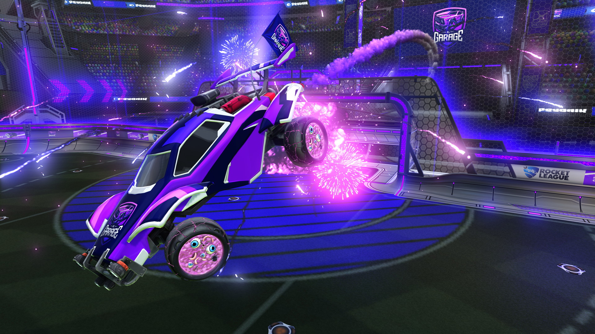Rosenbaum-Shields is a Import Topper that comes in all paints, except for Gold. This item can be obtained via Blueprint/Drops from Item Series (Haunted Hallows & Haunted Hallows (Unlocked)) or occasionally through the in-game Item Shop, where it has been for sale 5 times for 100 Credits. It's also available in Rocket League Sideswipe.