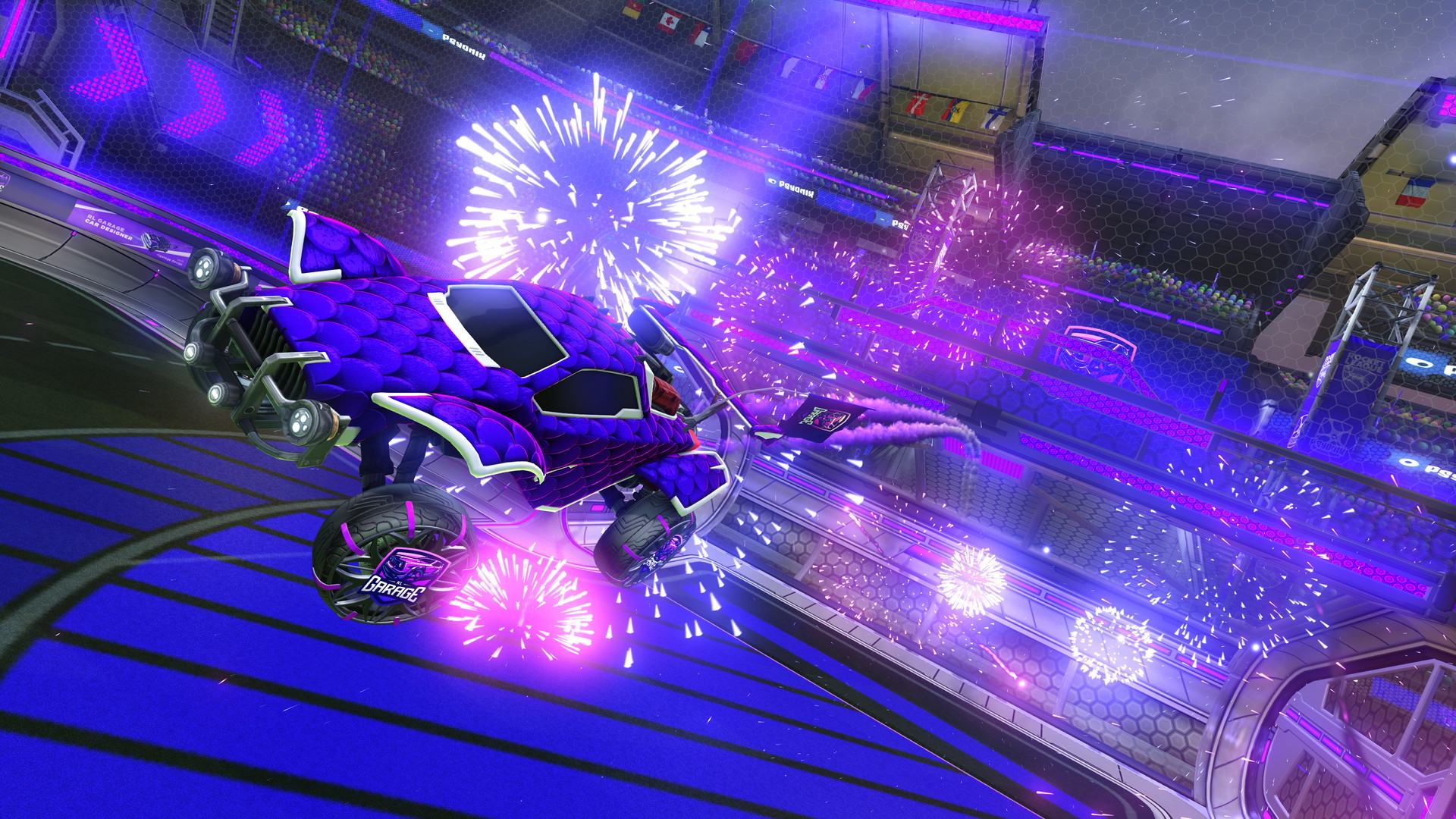 Hand-Kertzmann is a Luxury Decal that does not come painted. This item was originally obtainable by reaching Tier 57 of the Premium Rocket Pass Season 14, but this Rocket Pass has since ended. It's also available in Rocket League Sideswipe.