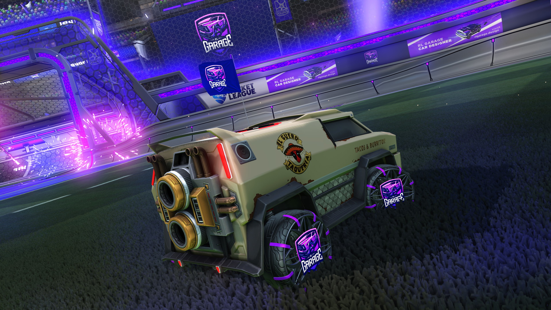 Purple Stark, Borer and Ullrich is a Deluxe Rocket Boost. This item can be obtained occasionally through the in-game Item Shop, where it has been for sale 4 times for 2200 Credits. It's also available in Rocket League Sideswipe.